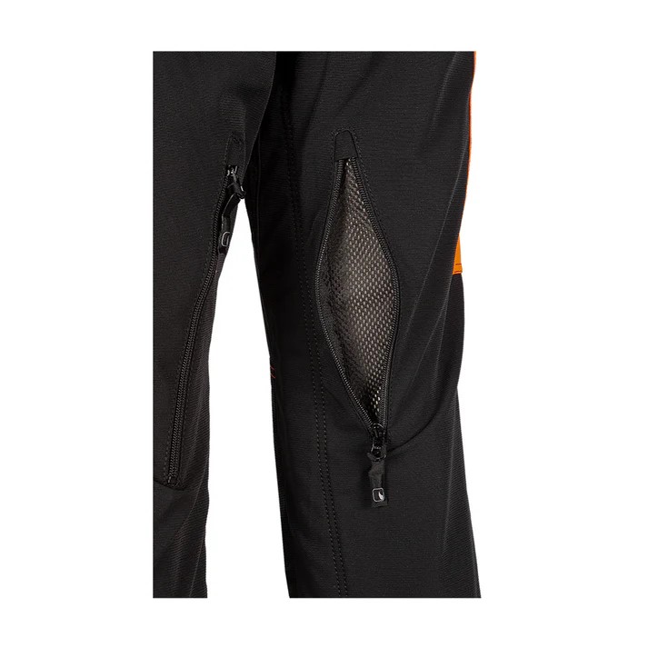 I pantaloni dispongono di tasche multiple, tra cui una tasca applicata con chiusura lampo, una tasca portametro, una tasca per chiave per candele, una tasca interna sulla coscia e due tasche interne con zip.