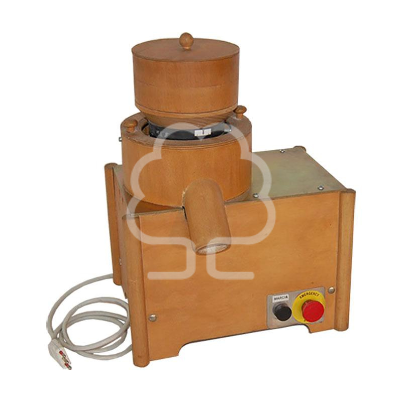 La macinazione avviene con la rotazione di una mola sull’altra azionata da un motore elettrico e cinghia dentata.