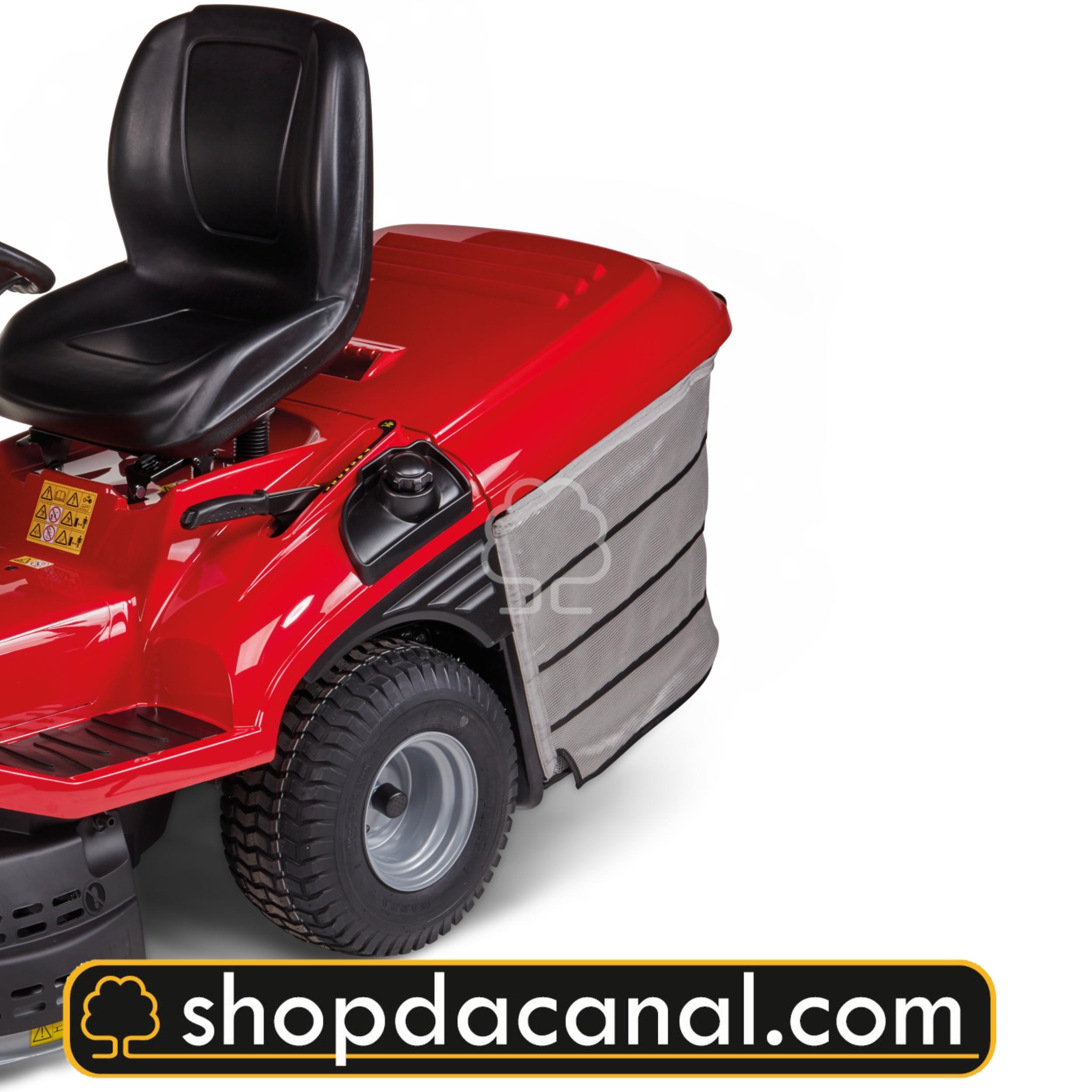 Il trattorino è dotato di un capiente cesto di raccolta da 280 litri, che consente di lavorare su ampie superfici senza interruzioni frequenti per lo svuotamento.