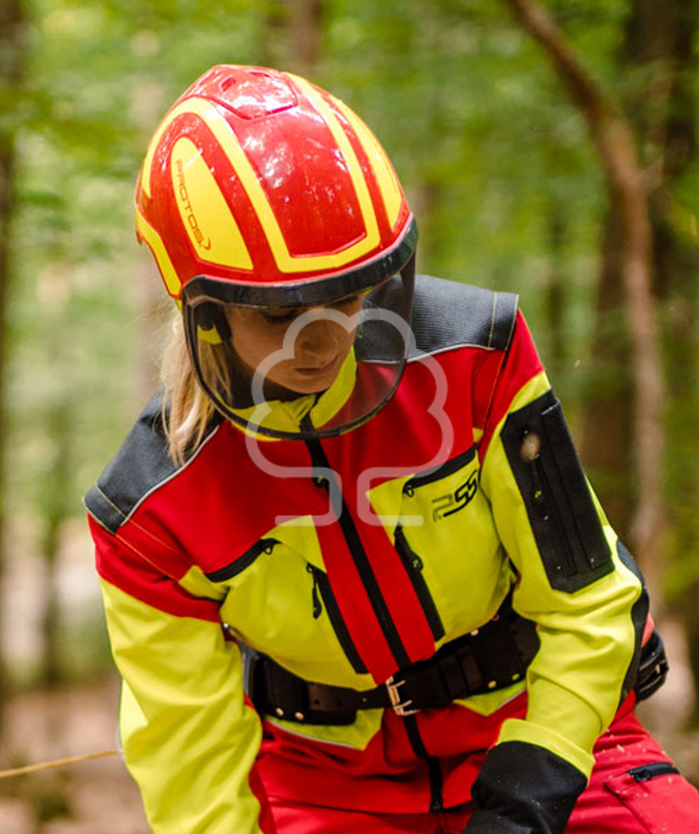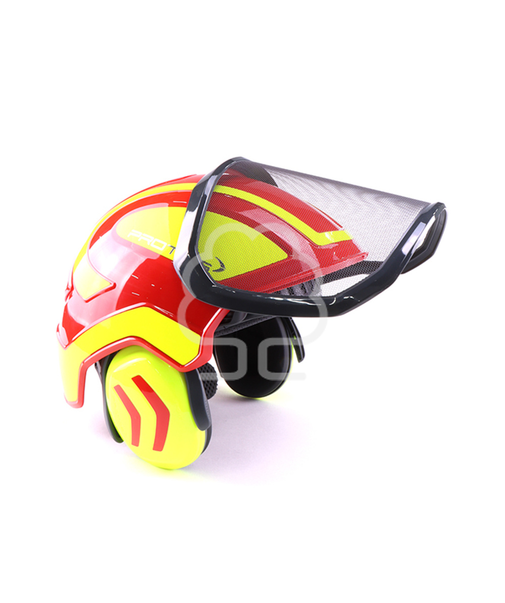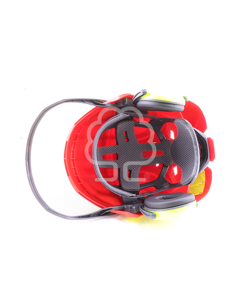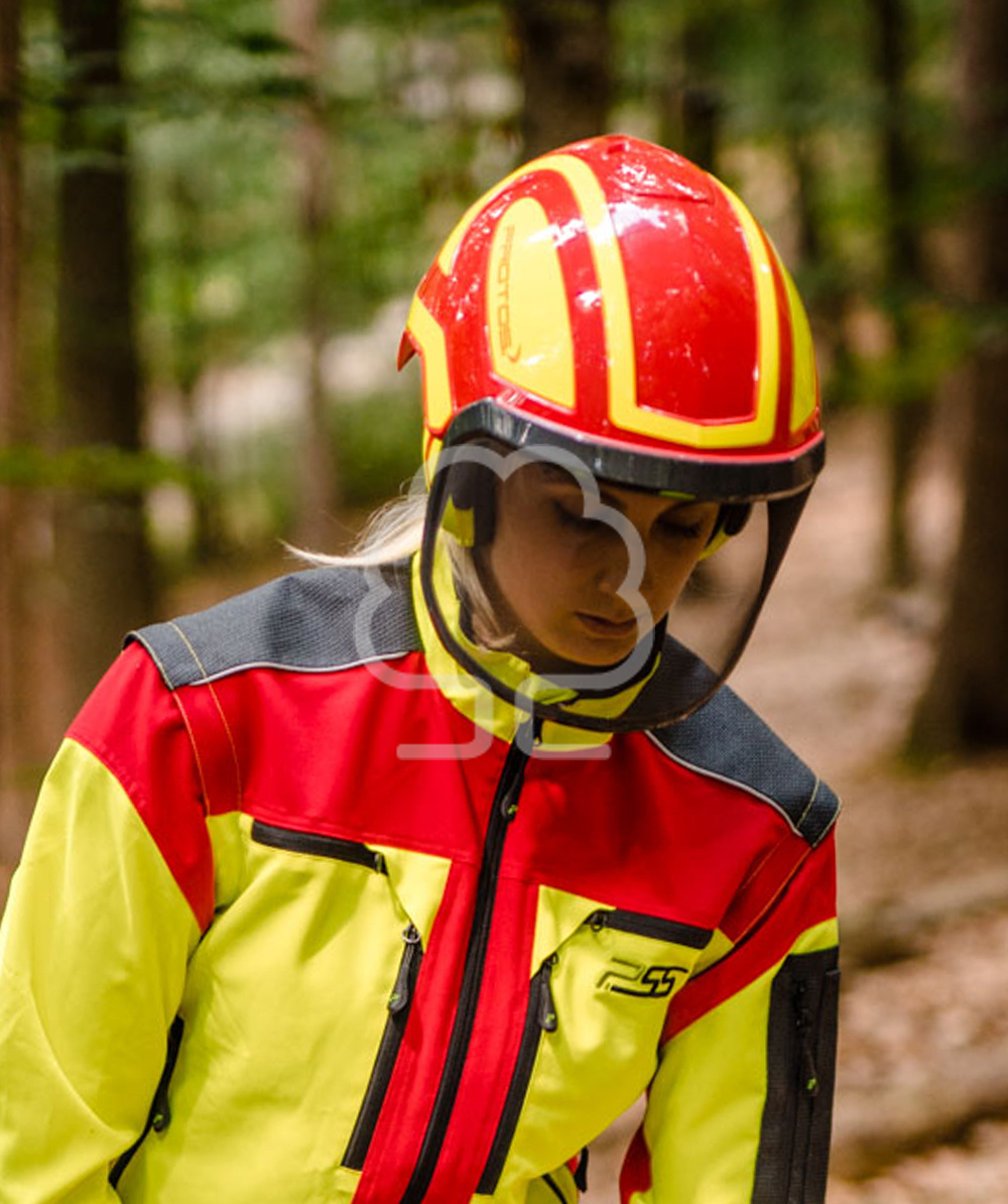 Il casco forestale Protos® è progettato per offrire protezione completa per orecchie, viso e collo. La visiera anti-metalli F39 offre un’ampia visuale panoramica, mentre le cuffie integrate riducono l’esposizione al rumore e proteggono dagli impatti laterali. Grazie alla leva di chiusura posteriore e alla regolazione brevettata della misura, il casco si adatta perfettamente alla circonferenza della testa, mantenendo la stabilità senza necessità di un cinturino sottogola.