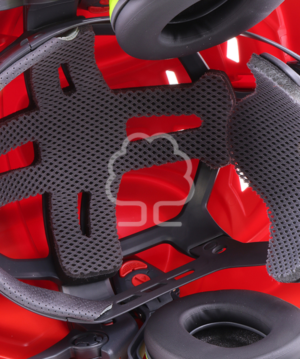 Il sistema di ventilazione attiva è regolabile tramite condotti d’aria sulla parte superiore del casco, permettendo un flusso d’aria costante in base alle esigenze climatiche. Il casco mantiene la testa fresca anche durante lunghe ore di utilizzo in ambienti caldi o umidi.