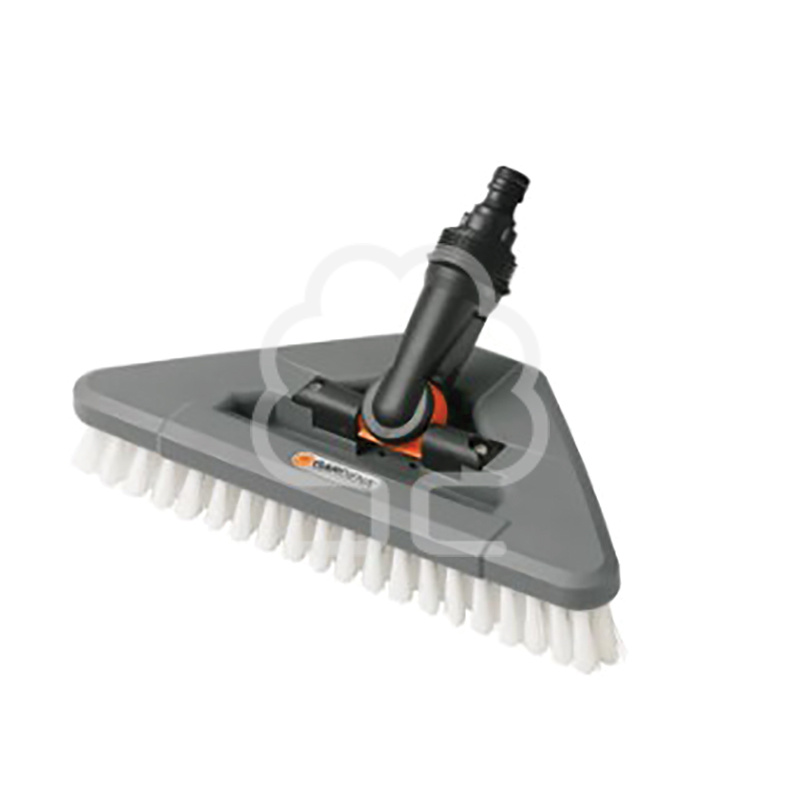 Può essere ruotato di 360°. Lo spazzolone snodato a setole dure può essere regolato in modo flessibile per un facile impiego in qualsiasi angolo. Può essere utilizzato con tutti i manici ad acqua Original GARDENA Cleansystem (art. 5552-20, 5550-20, 5554-20).
