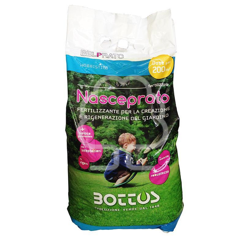 Concime organico minerale NPK 6-18-8 Bottos da impiegare contemporaneamente alle nuove semine primaverili ed autunnali e le rigenerazioni durante primavera e fine estate - Confezione da 5 kg per 200 mq
