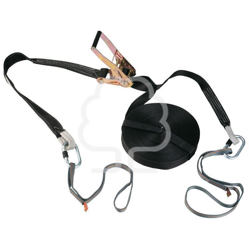 Linea vita temporanea orizzontale costruita con robusta fettuccia in poliestere.